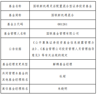 中国经济网北京8月22日讯 今日,国联基金公告,朱晓明离任国联新机遇混合,杜超管理。