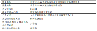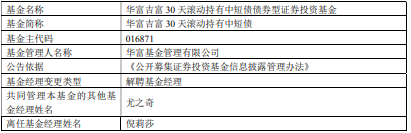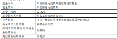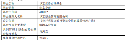 倪莉莎离任华富基金旗下7只基金