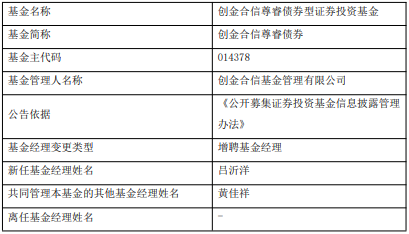 中国经济网北京8月29日讯 今日,创金合信基金管理有限公司公告,创金合信尊睿债券增聘基金经理吕沂洋。