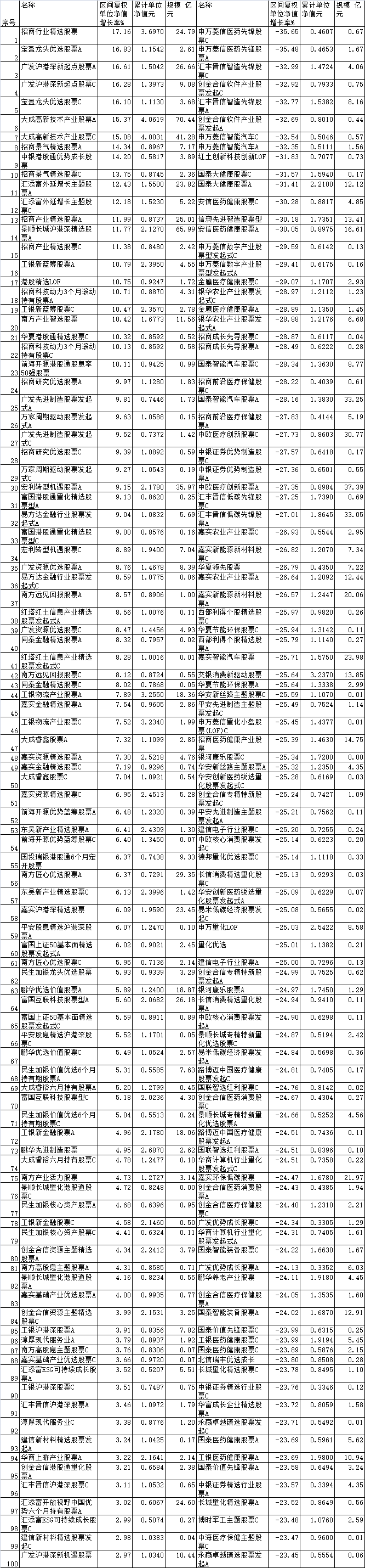 跌幅榜上,今年前8月共有14只普通股基跌幅超过了30%,如申万菱信医药先锋股票C、申万菱信医药先锋股票A、汇丰晋信智造先锋股票C、创金合信软件产业股票发起C、汇丰晋信智造先锋股票A、创金合信软件产业股票发起A、申万菱信智能汽车C、申万菱信智能汽车A、红土创新科技创新LOF等。