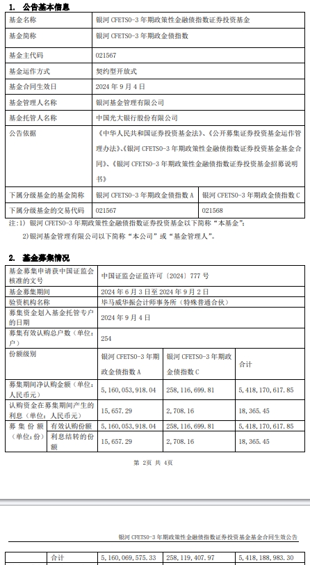 银河CFETS0-3年期政金债指数成立 募集金额54亿元