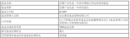 中国经济网北京9月5日讯 今日,信达澳亚基金管理有限公司公告,信澳产业优选一年持有混合增聘基金经理董玄。