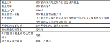 刘铭与卢轶乔离任银河君尚混合 增聘吴欣雨管理