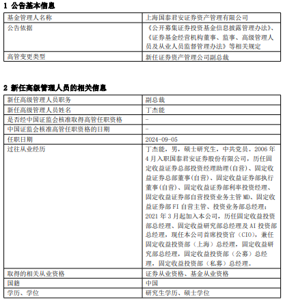 上海国泰君安资管任命丁杰能为副总裁