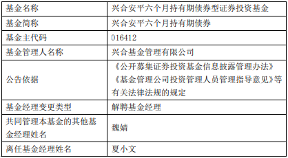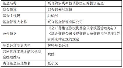 夏小文离任兴合锦安利率债兴合安平六个月持有期债券