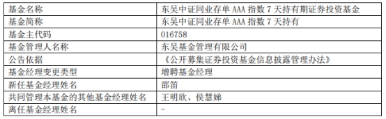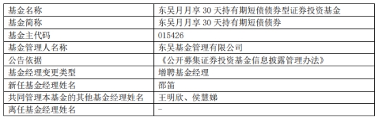 东吴基金3只基金增聘基金经理邵笛