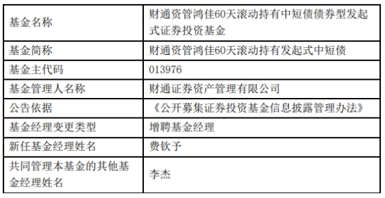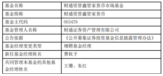 财通证券资管3只基金增聘基金经理费钦予