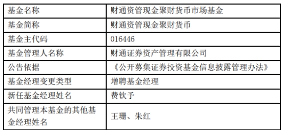 中国经济网北京10月8日讯 近日,财通证券资产管理有限公司公告称,财通资管鑫管家货币、财通资管鸿佳60天滚动持有发起式中短债、财通资管现金聚财货币增聘基金经理费钦予。