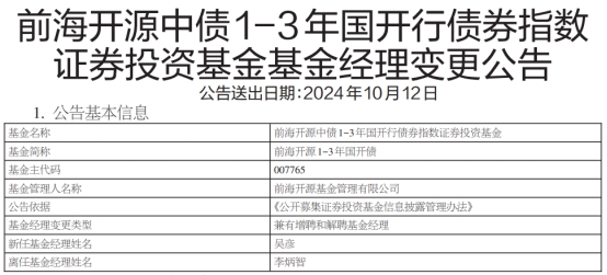 前海开源1-3年国开债增聘吴彦 李炳智离任