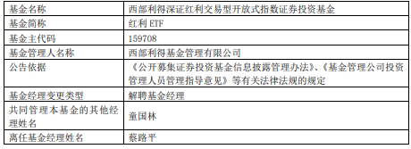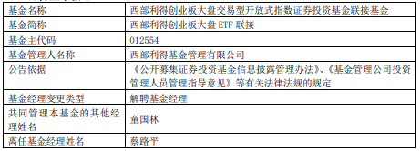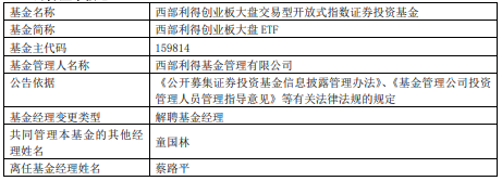 蔡路平离任西部利得旗下3只ETF基金