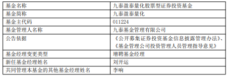 九泰盈泰量化增聘刘开运 成立3年亏损逾2成