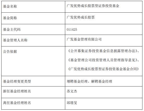 广发基金2只基金增聘苏文杰 优势成长股票成立来亏6成