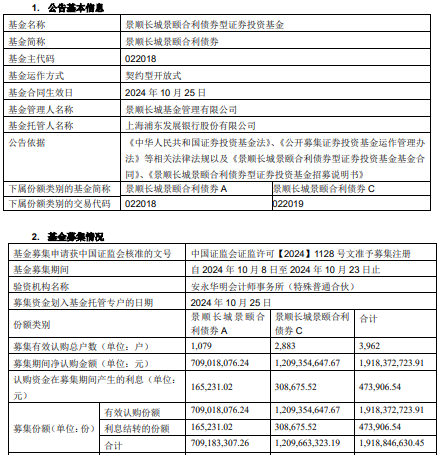 景顺长城景颐合利债券成立 规模19亿元