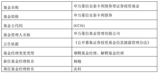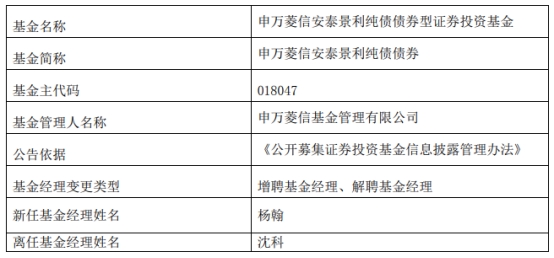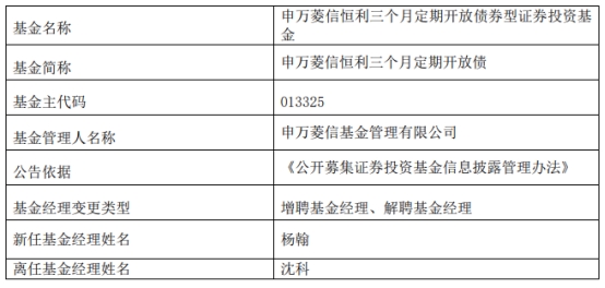 申万菱信基金3只债基增聘基金经理杨翰 沈科离任