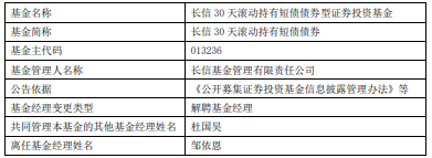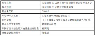 中国经济网北京10月30日讯 今日,长信基金管理股份有限公司公告,邹依恩离任长信稳航30天持有中短债债券长信30天滚动持有短债。