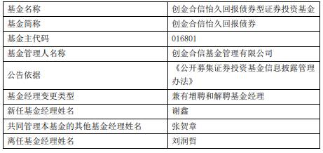 创金合信怡久回报债券增聘基金经理谢鑫 刘润哲离任