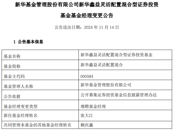 新华鑫益灵活配置混合增聘基金经理张大江