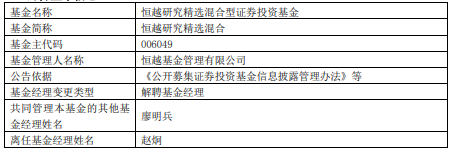 赵炯离任恒越基金旗下2混基 恒越研究精选年内跌10%