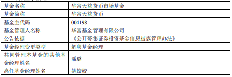 姚姣姣离任华富天益货币基金 潘璐管理