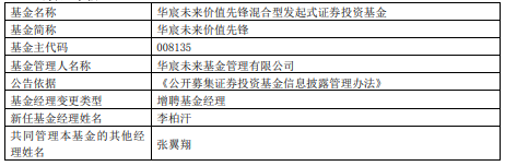 华宸未来价值先锋增聘李柏汗 成立近五年亏损16%