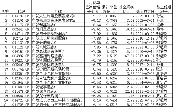 11月份广发基金21只权益基金跌超6% 郑澄然管理10只