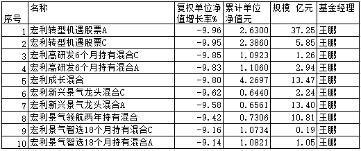 11月份宏利基金10只权益基金跌幅超9% 均为王鹏管理