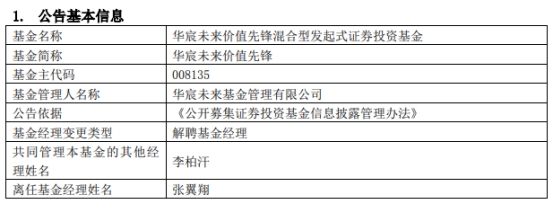 中国经济网北京12月5日讯 今日,华宸未来基金管理有限公司公告称,张翼翔离任华宸未来价值先锋(008135)。