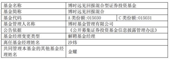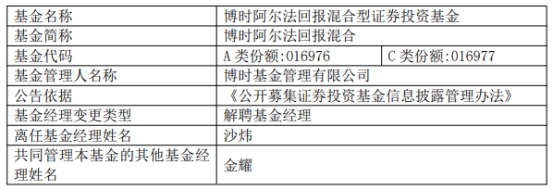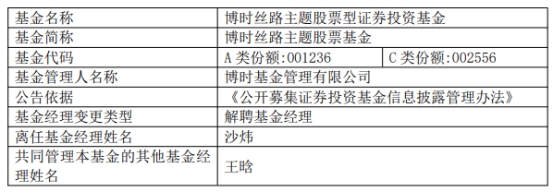 博时基金沙炜离任3只基金