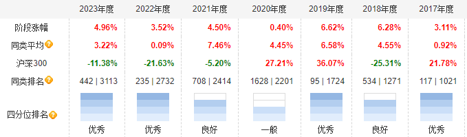 作为一只纯债基金,中加纯债两年债券在成立后的各年度业绩均为正,以C份额为例,其2017年至2023年的收益率分别为3.11%、6.28%、6.62%、0.40%、4.50%、3.52%、4.96%。截至2024年12月23日最后一次披露业绩,中加纯债两年债券A/C的累计单位净值为1.3637元、1.3436元,成立8年的累计收益率分别为36%和34%。
