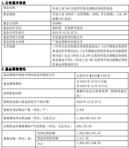 中国经济网北京12月26日讯 今日,兴业基金管理有限公司发布兴业上证180交易型开放式指数证券投资基金基金合同生效公告。