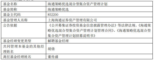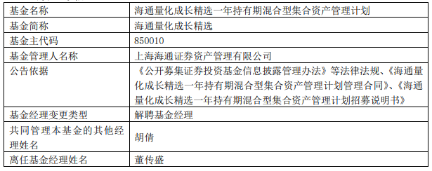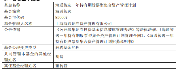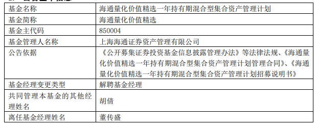 海通证券资管董传盛离任4只基金