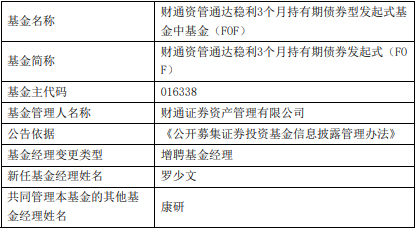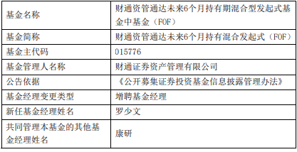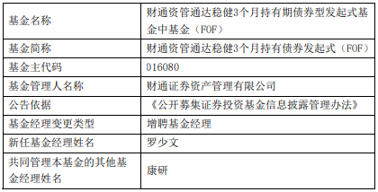 财通证券资管旗下3只基金增聘罗少文