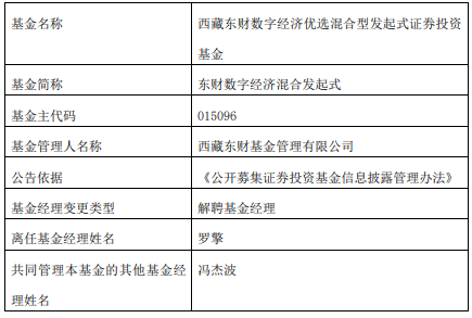 中国经济网北京1月2日讯 今日,西藏东财基金管理有限公司公告,罗擎离任东财数字经济混合发起式。