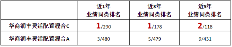 数据说明:基金排名来自银河证券2025.1.1发布,数据截至2024.12.31,近1年为2024.1.1至2024.12.31,近3年为2022.1.1至2024.12.31,近5年为2020.1.1至2024.12.31。华商润丰灵活配置混合A为混合基金-灵活配置型基金-灵活配置型基金(基准股票比例60%-100%)(A类),华商润丰灵活配置混合C为混合基金-灵活配置型基金-灵活配置型基金(基准股票比例60%-100%)(非A类)。华商元亨灵活配置混合A为混合基金-灵活配置型基金-灵活配置型基金(基准股票比例60%-100%)(A类)、华商元亨灵活配置混合C为混合基金-灵活配置型基金-灵活配置型基金(基准股票比例60%-100%)(非A类)。