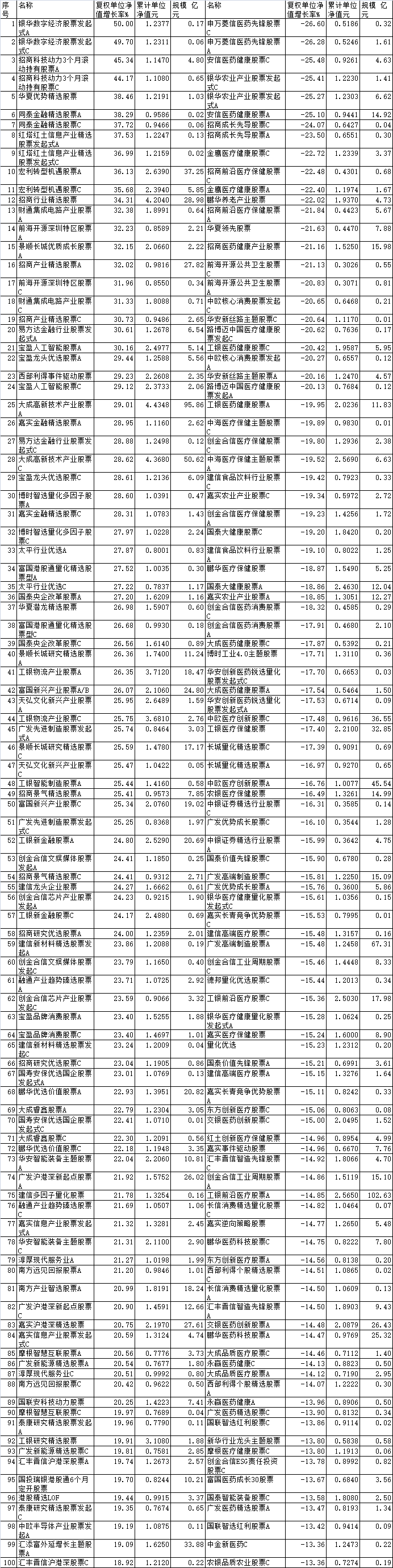2024年普通股票型基金涨跌幅前100名