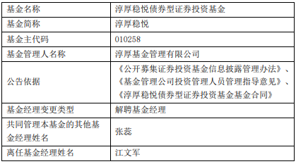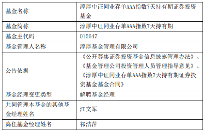 江文军离任淳厚中证同业存单AAA指数7天与淳厚稳悦