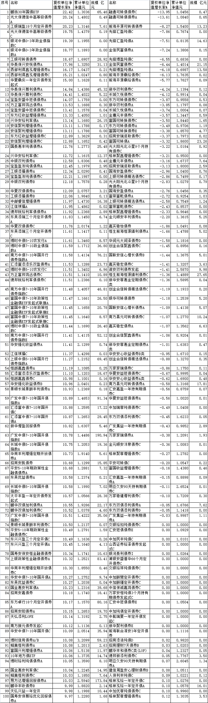 2024年债券型基金涨跌幅前100名