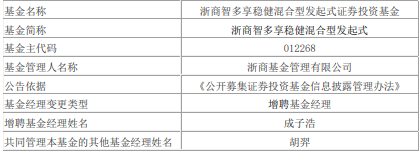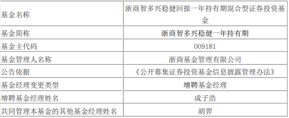 中国经济网北京1月9日讯 今日,浙商基金管理有限公司公告,浙商智多享稳健混合型发起式、浙商智多兴稳健一年持有期增聘成子浩。