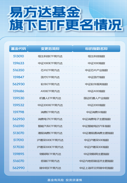 更贴切更好记 易方达基金旗下17只ETF官宣更名
