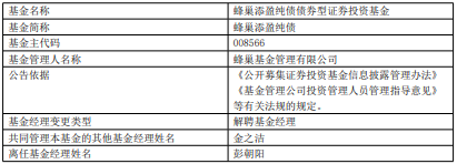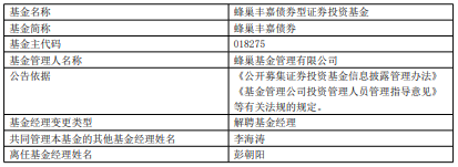 彭朝阳离任蜂巢丰嘉债券与蜂巢添盈纯债