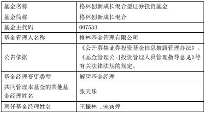 王振林宋宾煌离任格林创新成长 成立5年多亏约2成