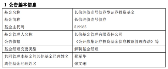 长信基金张文琍离任2只债券基金