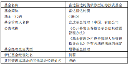 中国经济网北京2月19日讯 昨日,富达基金管理(中国)有限公司公告,富达裕达纯债增聘何萌。