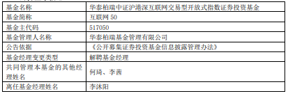 李沐阳离任华泰柏瑞中证沪港深互联网ETF