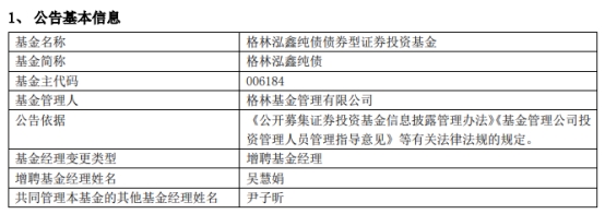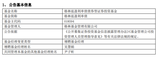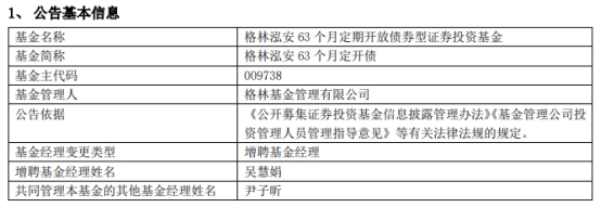 格林基金3只债券基金增聘吴慧娟
