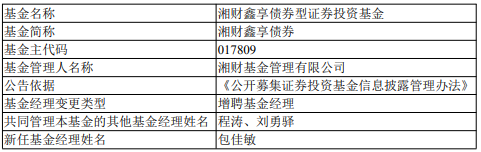 中国经济网北京2月21日讯 今日,湘财基金管理有限公司公告,湘财鑫享债券增聘包佳敏。