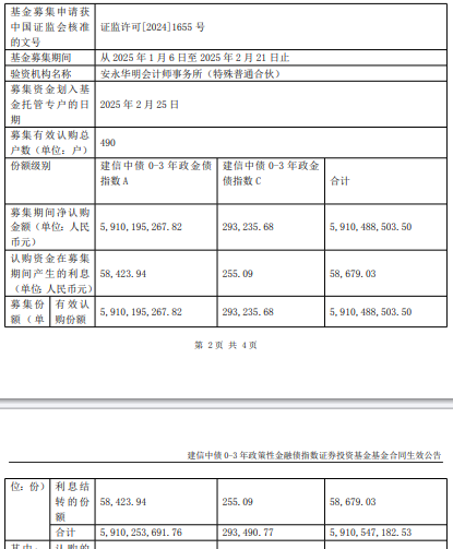 建信中债0-3年政金债指数成立 规模59亿元