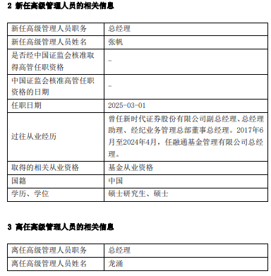 中国经济网北京3月3日讯 今日,先锋基金公告,任命张帆为总经理,龙涌离任。