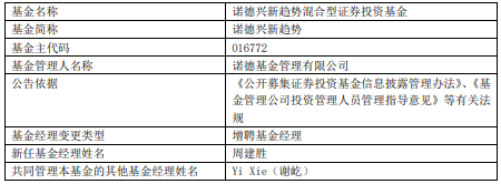 中国经济网北京3月3日讯 近日,诺德基金公告,诺德兴新趋势增聘周建胜。
