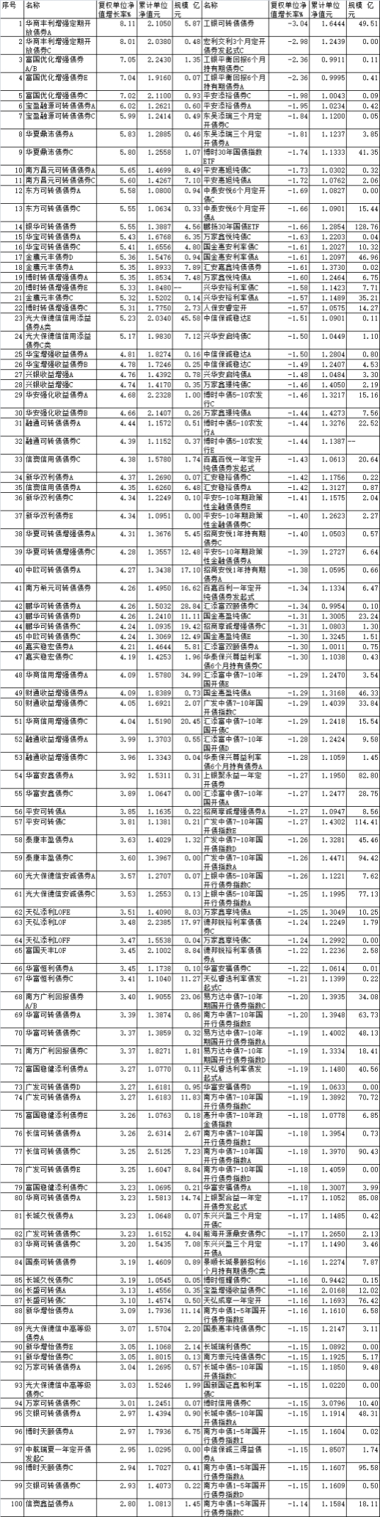 2月份1520只债基上涨 华商丰利增强定开债上涨8%